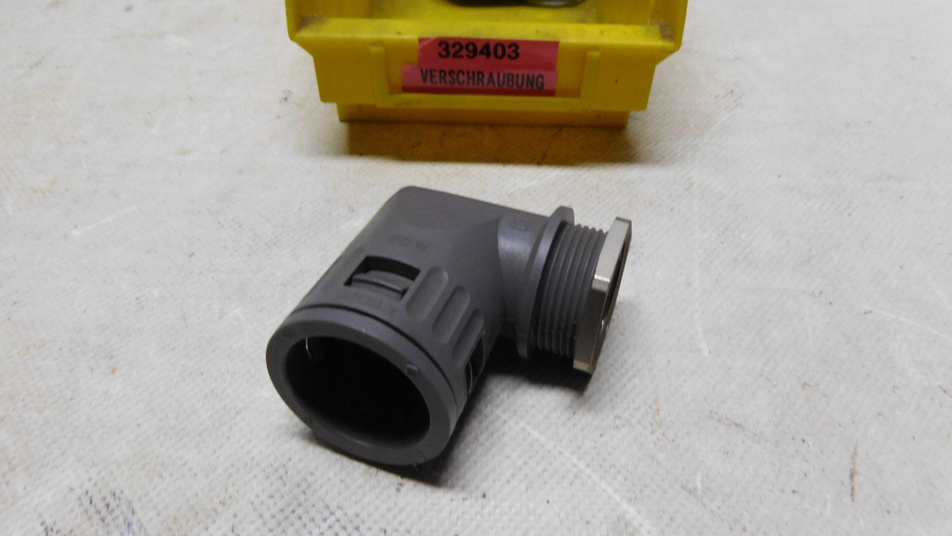 Schnellverschraubung für Wellschlauch 90° Winkel grau RQW AD28,2 329403